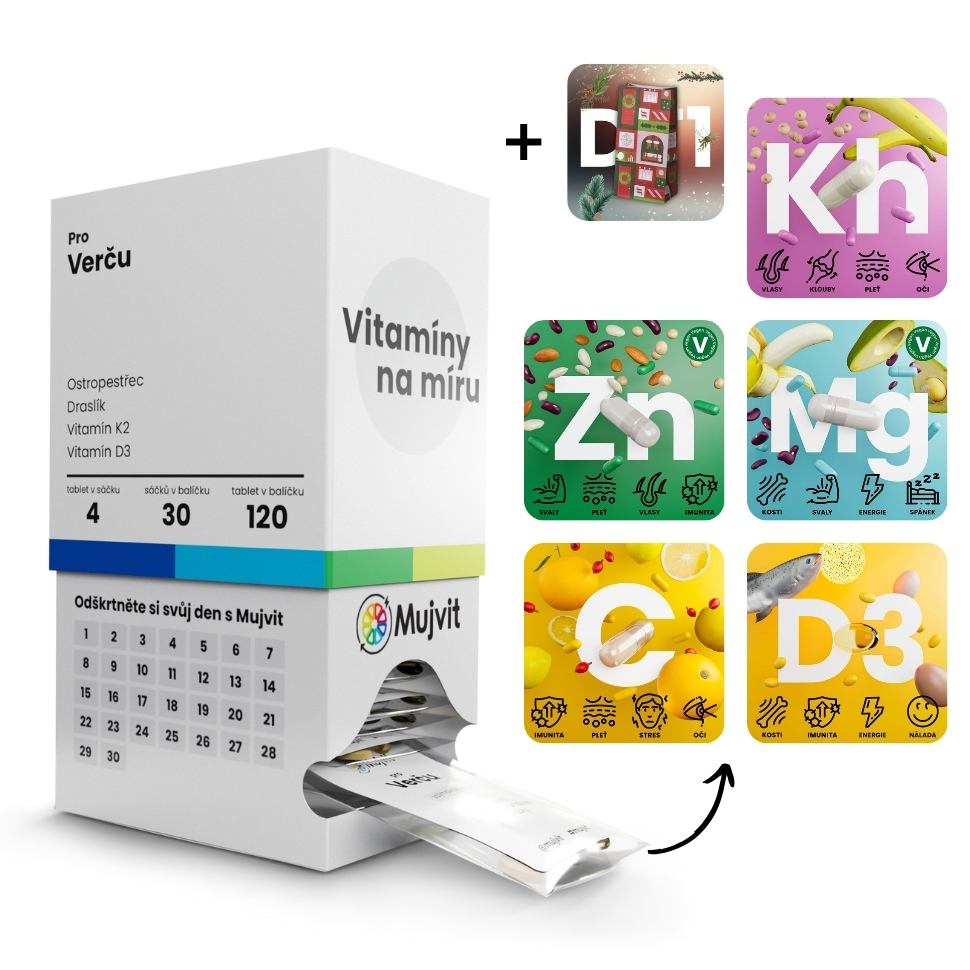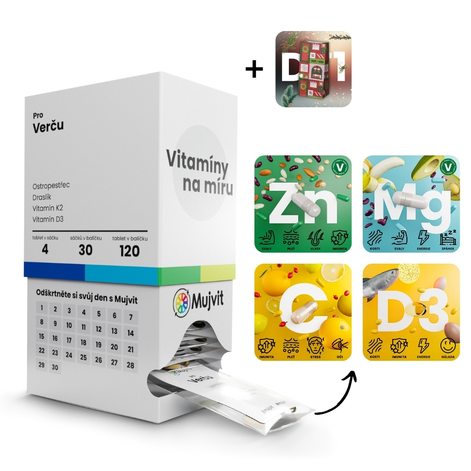 1x Vitamín C, 1x Vitamín D3, 1x Zinek, 1x Hořčík